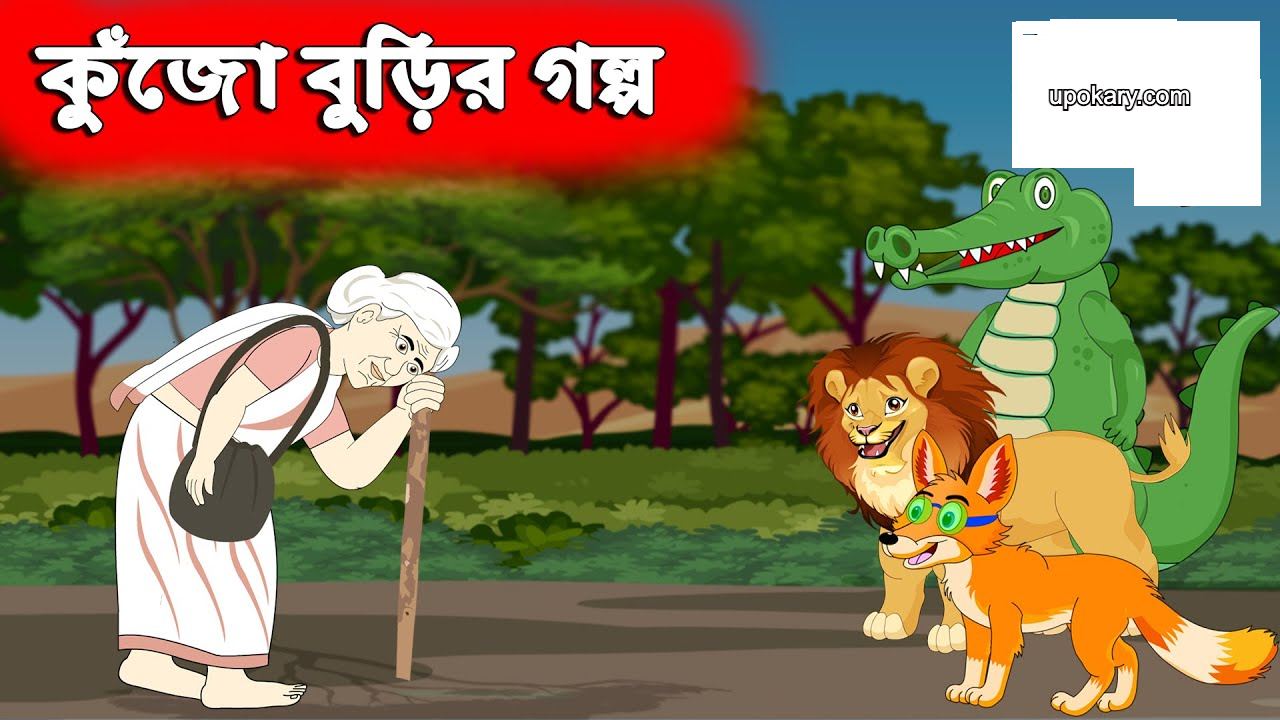 বুড়ি রওয়ানা হল। লাঠি ঠুক ঠুক করে কুঁজো বুড়ি চলল। খানিক দূরে যেতেই এক শিয়ালের সঙ্গে বুড়ির দেখা। শিয়াল বলল, আমার খুব খিদে। বুড়ি তোমাকে আমি খাব।